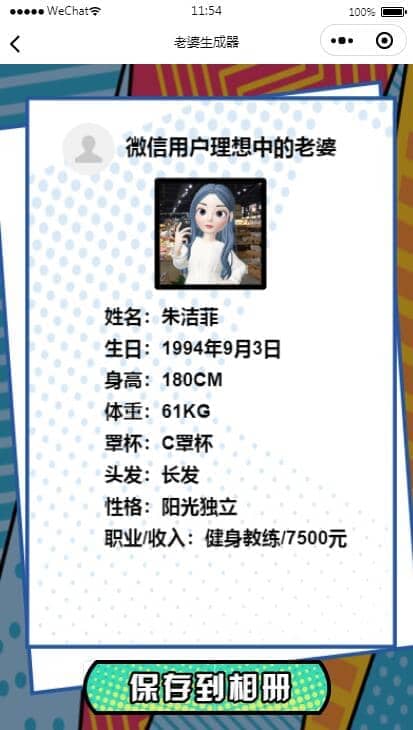未来老婆查询生成器微信小程序源码下载,支持流量主。一款未来老婆或女朋友查询生成器,